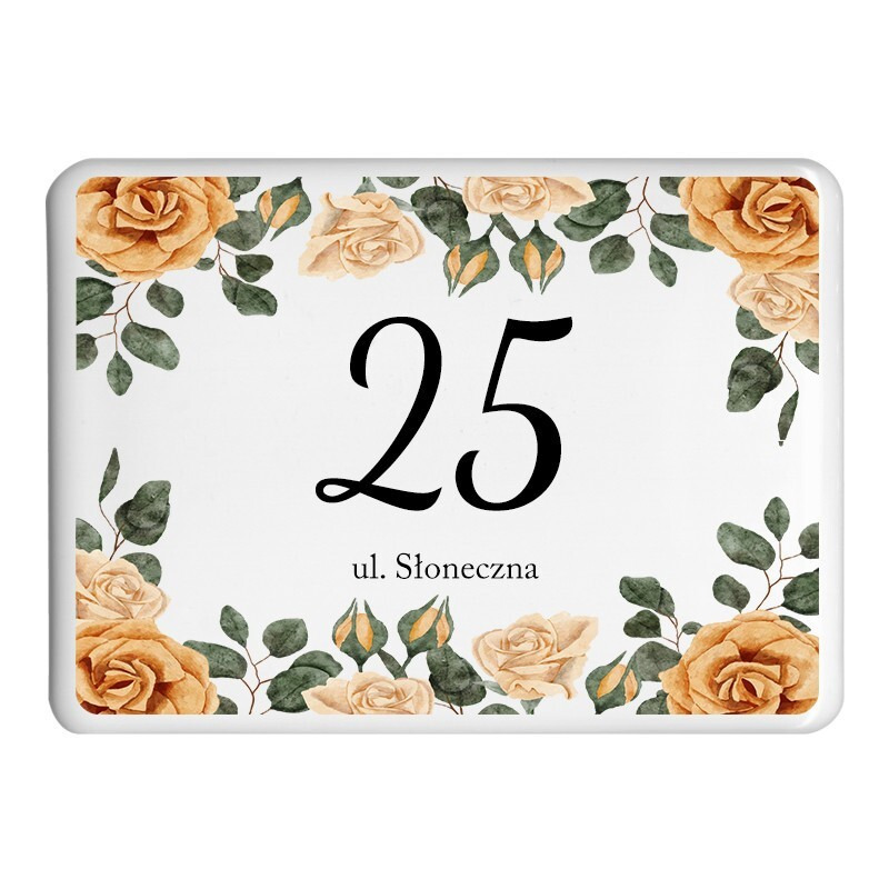 Budynki w stylu rustykalnym, wiejskim lub boho często zyskują na zastosowaniu motywów roślinnych, które dodają elewacji lekkości. Z kolei wzory folkowe to ciekawy akcent dla osób, które chcą podkreślić tradycyjny charakter miejsca. Sprawdź nasze tabliczki adresowe w kwiaty i tabliczki adresowe z motywem folkowym.